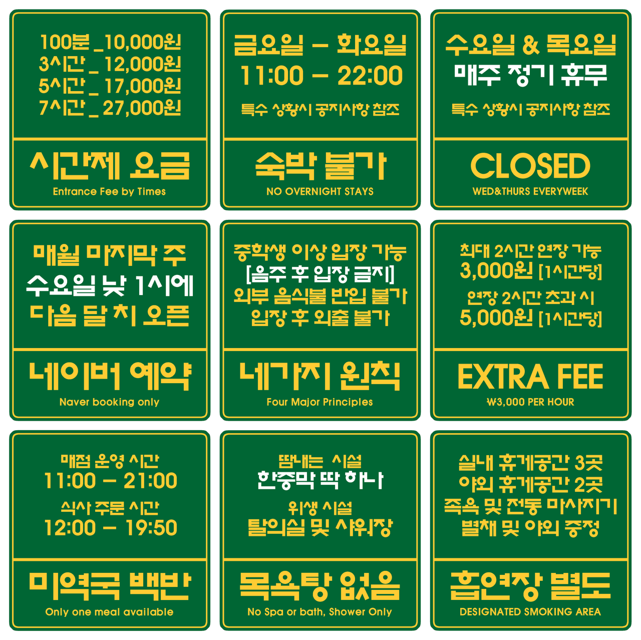 노키즈존으로 조용하게 힐링하시고 싶으신 분들께 특히 추천드립니다. 네이버로 간편 예약도 가능하며, 숙박은 불가능하니 참고 부탁드립니다. 위에 사진은 나무향기 한증막에서 제공하고 있는 사진이니 참고하셔서 이용하시면 좋을 것 같습니다. 매주 수요일 휴무이며, 이번 연휴에는 당일과 전날인 1/28~29는 제외하고 오픈이니 이 날은 제외하고 방문하시기 바랍니다.